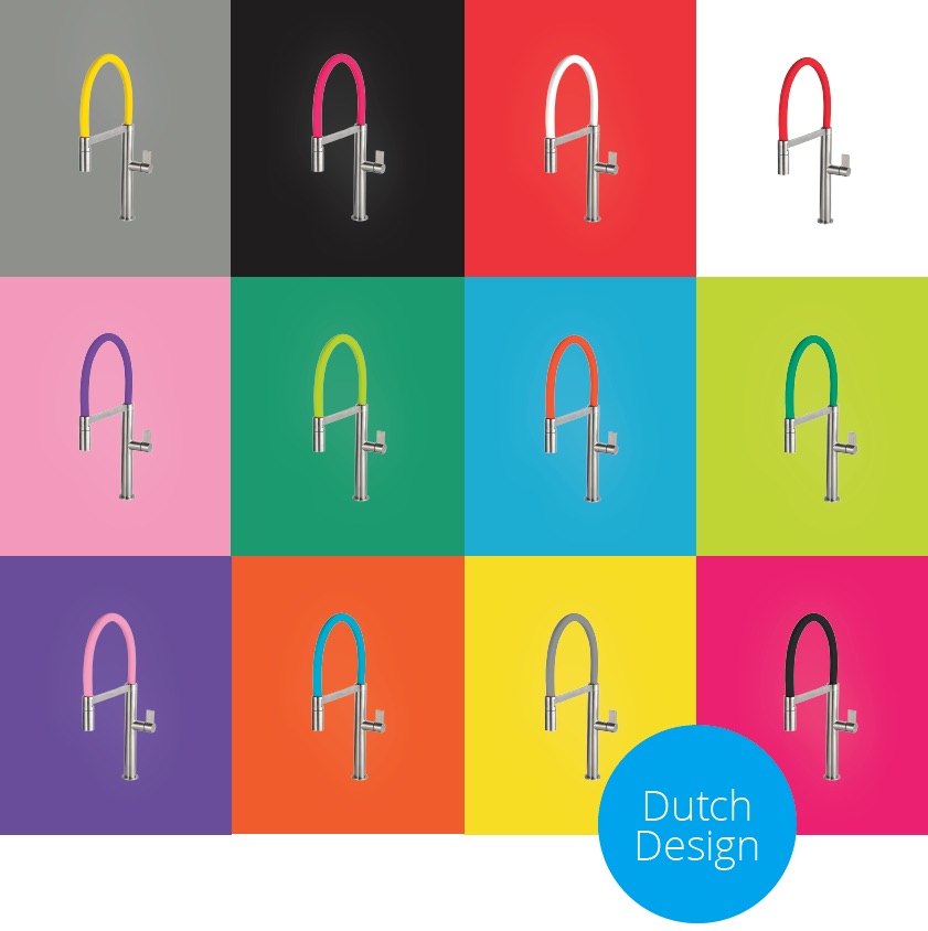 Wie van kleur in de keuken houdt, wordt zeker blij van de Colours kranen-collectie van Caressi. Het Nederlandse bedrijf is specialist in keukenaccessoires en staat bekend om haar Dutch Design spoelbakken en keukenkranen. De kranenslang van deze gave gekleurde kranen is verkrijgbaar in alle kleuren van de regenboog.